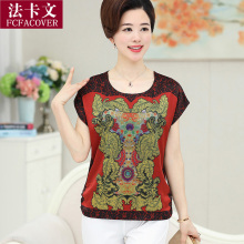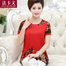 中老年人妈妈装夏装短袖针织T恤 40-50岁印花打底衫女装大码上衣