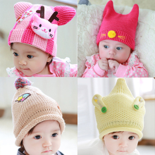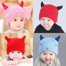 宝宝帽子男女童3-6-12月秋冬款针织毛线套头帽婴儿帽1-2岁牛角帽