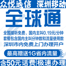 深圳移动全球通卡|含50元话费大流量上网卡语音电话手机号码卡