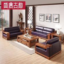 盛唐古韵实木真皮沙发新中式家具胡桃木现代客厅全实木沙发组合