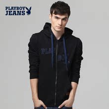 花花公子秋款男士长袖卫衣外套男连帽抽绳拉链开衫字母潮男