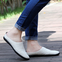 夏季亚麻布鞋韩版潮个性包头男士凉拖半拖鞋室内休闲凉鞋豆豆托鞋