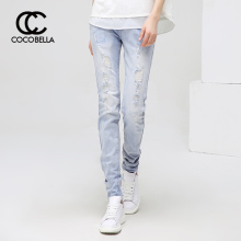 COCOBELLA2017春季新款欧美范弹力修身小脚破洞女休闲牛仔裤PT121