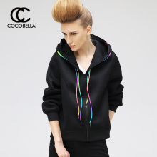 COCOBELLA 2017春季新品彩虹抽绳女网眼空气层连帽拉链卫衣CT387