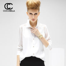 COCOBELLA 2017春季新品V领微透视拼接衬衣女中长款雪纺衬衫HT17