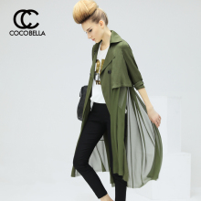 COCOBELLA 早春2017雪纺拼接女士长款翻领轻薄风衣外套CT588