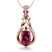 HLOVE/惠爱18K玫瑰金吊坠女 群镶红碧玺钻石项链正品 项坠颈饰