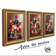 客厅装饰画欧式油画花卉餐厅挂画沙发背景墙三联画花开富贵壁画