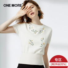 ONE MORE文墨2017春装新款修身绣花文艺线衫女短袖针织衫套头毛衣