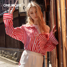 ONE MORE文墨2017夏装新款条纹上衣女长袖衬衣装长款宽松休闲衬衫