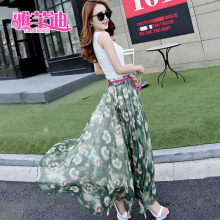 2017夏装新款女士仙女时尚印花雪纺半身长裙松紧腰大摆半身裙大码