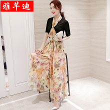 2017春夏新款雪纺裙裤阔腿裤女式宽松裤印花阔脚裤时尚休闲长裤裙