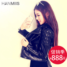 Hanmiis2015秋款 真皮皮衣女短款单皮夹克女羊皮修身机车皮衣外套