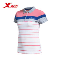 特步运动服套装女2017新款有领短袖T恤女夏纯棉夏季运动休闲上衣