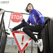小虫米子春秋欧洲站宽松显瘦撞色长袖运动卫衣时尚套装女潮m1315