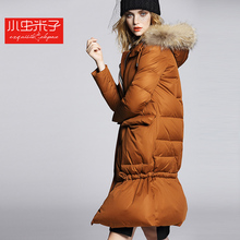 小虫米子冬季女装加厚白鸭绒毛领连帽休闲鱼尾中长款羽绒服女J573