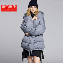 小虫米子冬季女装欧洲站宽松显瘦加厚连帽中长款羽绒服白鸭绒J587
