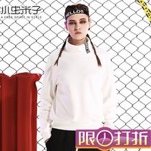 小虫米子春装宽松bf圆领白色太空棉卫衣女短款学生运动套头Z1310