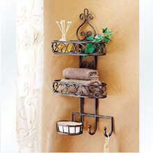 田园铁艺壁挂置物架玄关搁板收纳架子浴室层架带挂钩