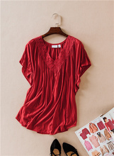 A5296牙牙家大码欧单 蕾丝V领 娃娃衫T恤 很多颜色