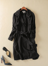 A5206牙牙家大码胖mm女装外单好货欧美风黑色大气长款风衣 显瘦