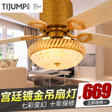 天骏52寸水晶简约时尚吊扇灯 餐厅客厅欧式现代仿古木叶风扇灯