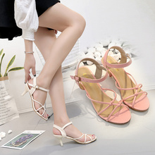 【天天特价】百搭柳丁露趾凉鞋女夏季一字扣带铆钉绑带细跟高跟鞋