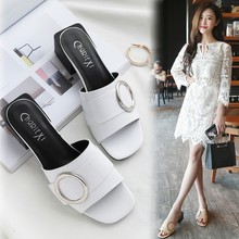 欧美时尚凉拖鞋女夏2017新款圆扣低跟粗跟室内外穿学生一字拖鞋潮