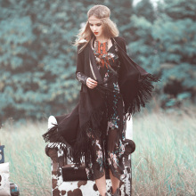 迷阵2016春装原创女装民族风中长款风衣流苏开衫披肩外套MZ07048