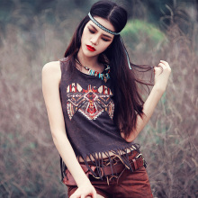 迷阵原创2016新款欧美印花打底短款修身无袖T恤流苏背心女夏Y0111