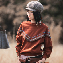 迷阵女装秋冬原创民族风宽松休闲刺绣流苏圆领套头卫衣女MZ12004