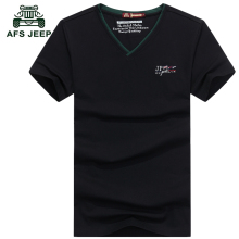 AFS JEEP战地吉普新款夏季男士短袖T恤宽松V领绝色简约体恤衫潮