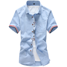 短袖衬衫男士2017夏装新款韩版撞色拼接修身休闲衬衣纯色寸衣潮