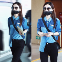 赵丽颖同款明星2017春夏装韩版修身潮外套刺绣上衣牛仔长袖衬衫女
