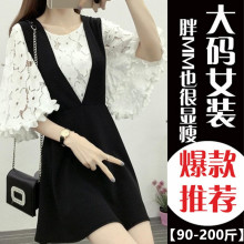加肥加大码女装两件套胖mm200斤套装胖妹妹春装中长款显瘦连衣裙