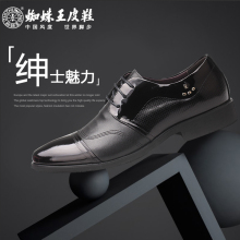 蜘蛛王男鞋新款2016春季商务正装皮鞋男士英伦风尖头真皮系带鞋子