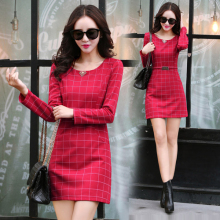 2017春秋女装新款连衣裙韩版包臀大码一步裙时尚保暖格子打底裙子