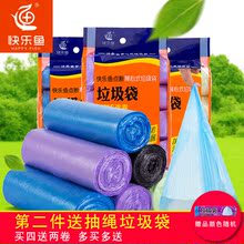 快乐鱼5卷装手提垃圾袋厨房酒店背心点断式垃圾袋居家用便利袋子