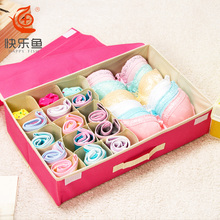 快乐鱼多格袜子收纳盒内衣储物箱无纺布物品储物盒子可折叠收纳盒
