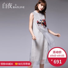 白夜2017春夏新款复古刺绣印花真丝欧根纱无袖民族风连衣裙中长款