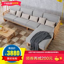 客厅全实木沙发组合 现代简约北欧贵妃小户型转角橡胶木沙发木质