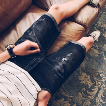 林弯弯磨破牛仔短裤男夏季薄款五分裤直筒男复古简约百搭条纹裤潮