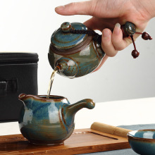 快客杯一壶二杯便携式车载旅行茶具 日式侧把壶 粗陶功夫茶具套装