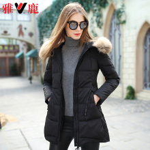 雅鹿2016新款冬羽绒服女中长款修身显瘦 韩版时尚保暖连帽外套潮