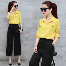 女装新款2017韩范时尚名媛套装春秋衬衫阔腿裤女长袖气质套装潮