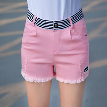 夏季新款韩版牛仔短裤女夏高腰大码毛边破洞休闲显瘦百搭女士热裤