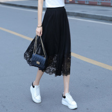 夏季新款2017蕾丝网纱半身裙女夏中蓬蓬裙百褶裙子长款纱裙a字裙