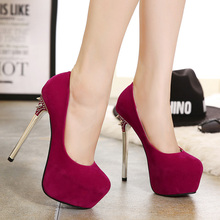 2016春季新款12cm超高跟圆头单鞋细跟浅口防水台绒面女鞋红色婚鞋