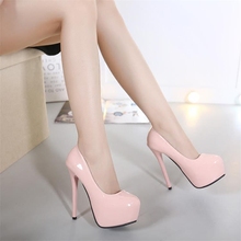 超高跟14cm圆头漆皮面防水台细跟浅口性感T台职业女单鞋春秋新款