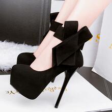 超高跟单鞋 14CM高性感春季蝴蝶结细跟夜店高跟鞋防水台女单鞋潮